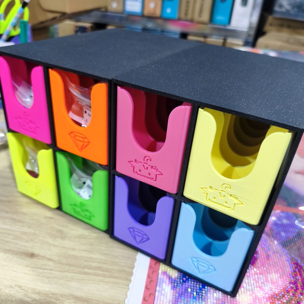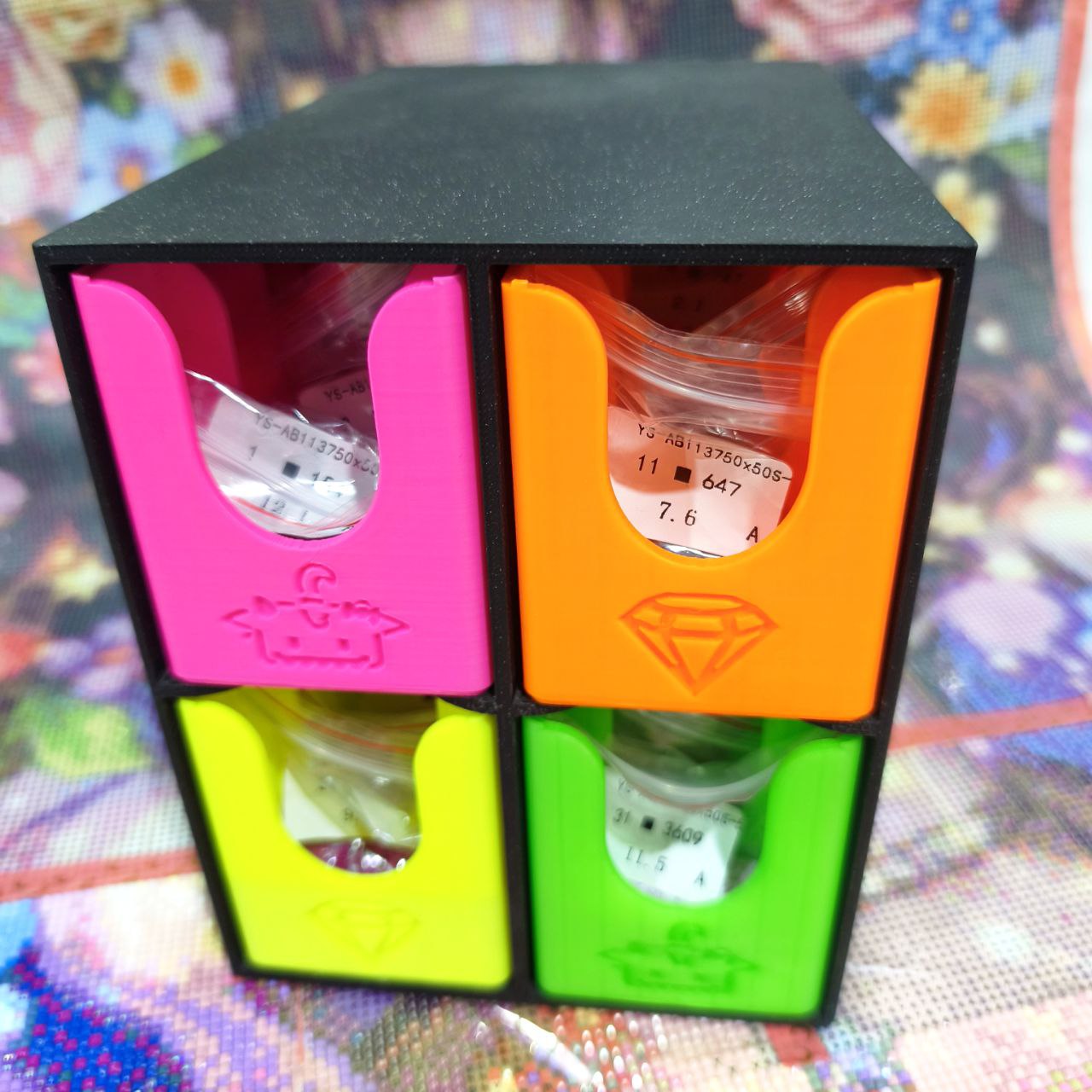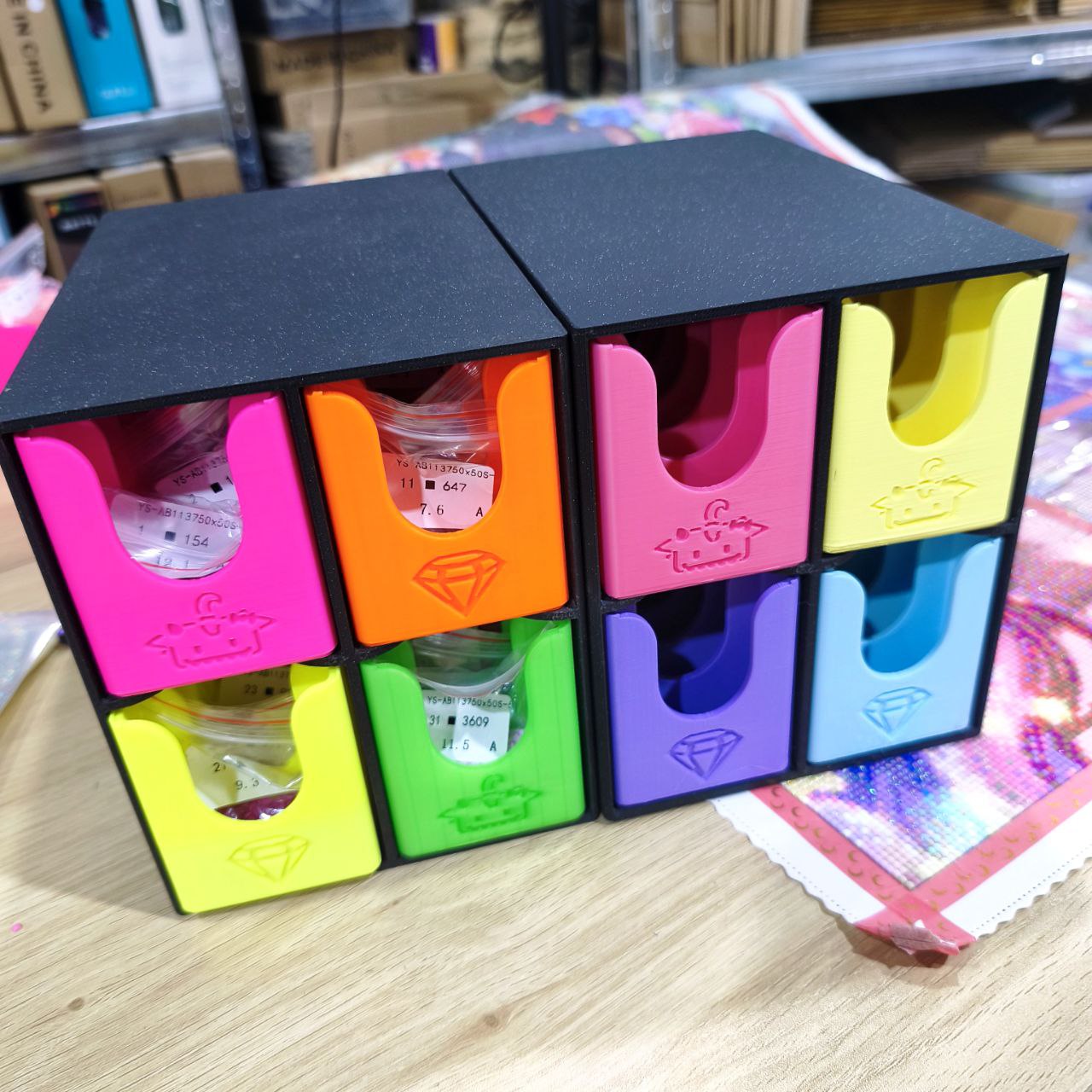 L'ensemble du pack est exactement comme on le voit sur les images, avec un tiroir de chaque couleur.