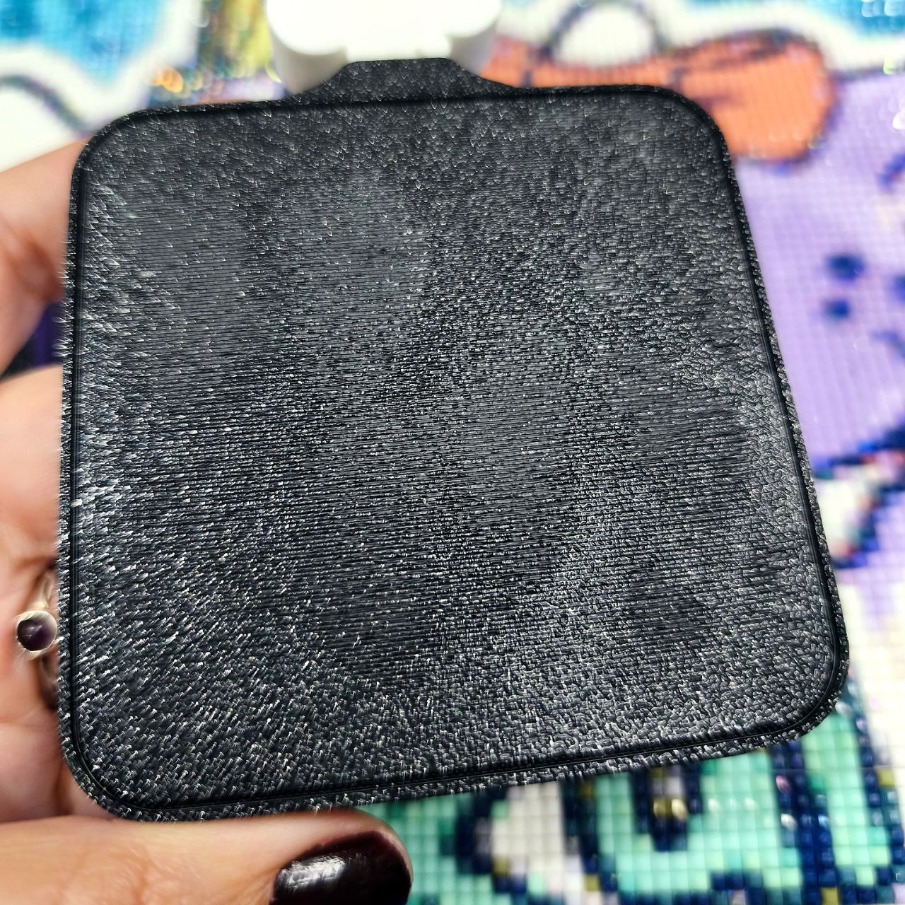 Tara: Tiene marcas de agarre en la parte trasera de la bandeja, y algún detalle en la tapa.