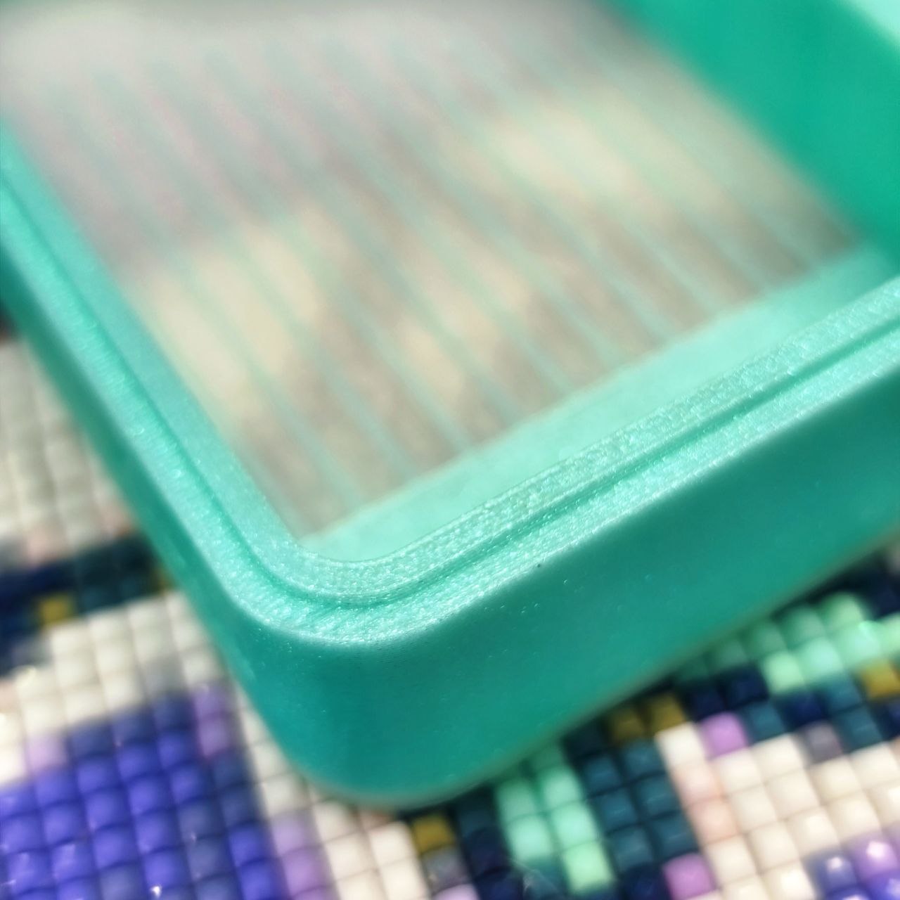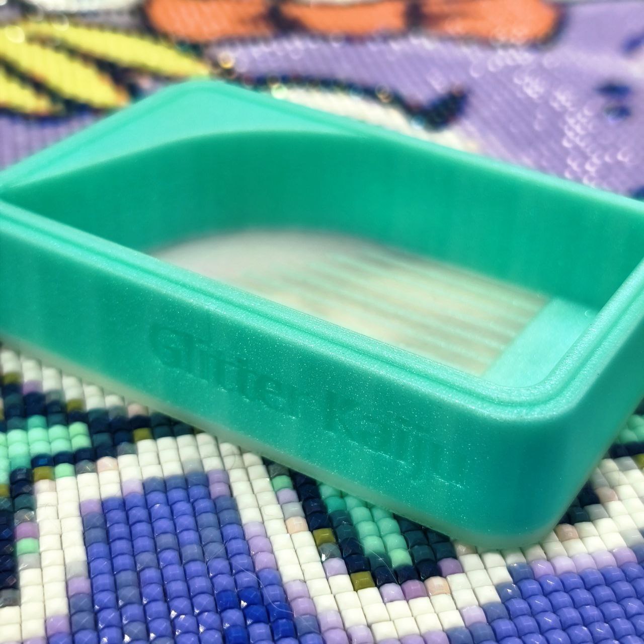 OUTLET: Esta bandeja es una prueba de impresión del diseño final, tiene un tamaño un poco distinto al original y no cabe dentro del tamaño mediano. No tiene ninguna tara. Hilo verde Fairy Dust.
